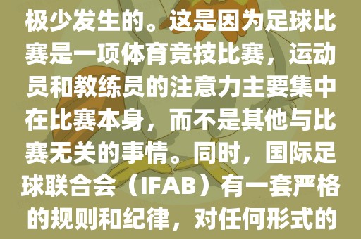 在世界杯足球比赛中,打架事件极为罕见。这是因为足球比赛的核心是竞技,运动员和教练员的关注点在比赛本身,而非其他杂事。国际足球联合会实施严格的规则和纪律,对暴力行为采取零容忍政策,并会进行严厉处罚。这使得足球比赛保持公正、公平的环境。