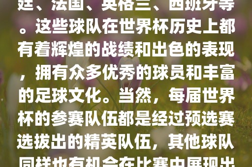 仅供参考,如需了解更多关于世界杯强队的信息,建议查看最新的新闻报道或相关足球分析文章。
