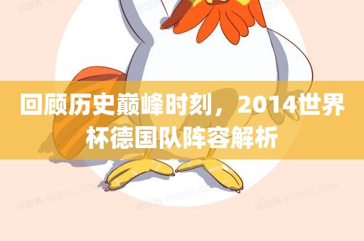 摘要:回顾2014年世界杯德国队的巅峰时刻,其强大阵容令人瞩目。本文解析了这支队伍的特点和优势,探讨了其成功的原因。通过回顾历史,展现了德国队在足球领域的辉煌成就和实力。这支队伍不仅拥有出色的球员个人技术,更在团队协作和战术布局上表现出色,成为当时世界杯赛场上的一股强大力量。