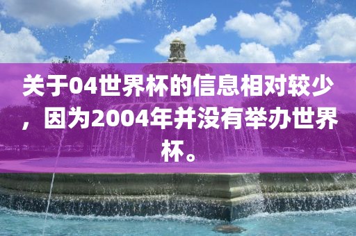 关于04世界杯的信息相对较少,因为2004年并没有举办世界杯。
