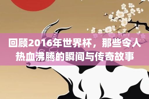 回顾2016年世界杯,那些令人热血沸腾的瞬间与传奇故事仍然历历在目,从开幕式的文艺表演到各国代表队的入场仪式,从传奇对决到黑马逆袭,从英雄崛起到其他精彩瞬间与故事,每一个细节都让人热血沸腾,这些瞬间和故事不仅让我们回味无穷,还让我们对足球这项运动充满了热爱和激情,我们也期待着下一届世界杯的到来,期待着更多的精彩瞬间和传奇故事的诞生,让我们共同期待足球的未来!