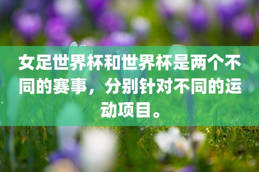 女足世界杯和世界杯是两个不同的赛事,分别针对不同的运动项目。